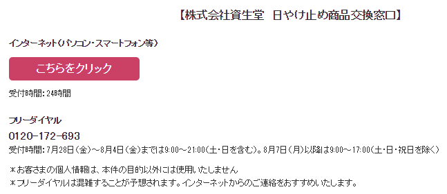 通過資生堂官方商品交換窗口,在網(wǎng)上申請(qǐng)之后,資生堂會(huì)寄出新品,而回收的返品也由資生堂承擔(dān)運(yùn)費(fèi)。此外,海外客戶也有專門的對(duì)應(yīng)渠道。
