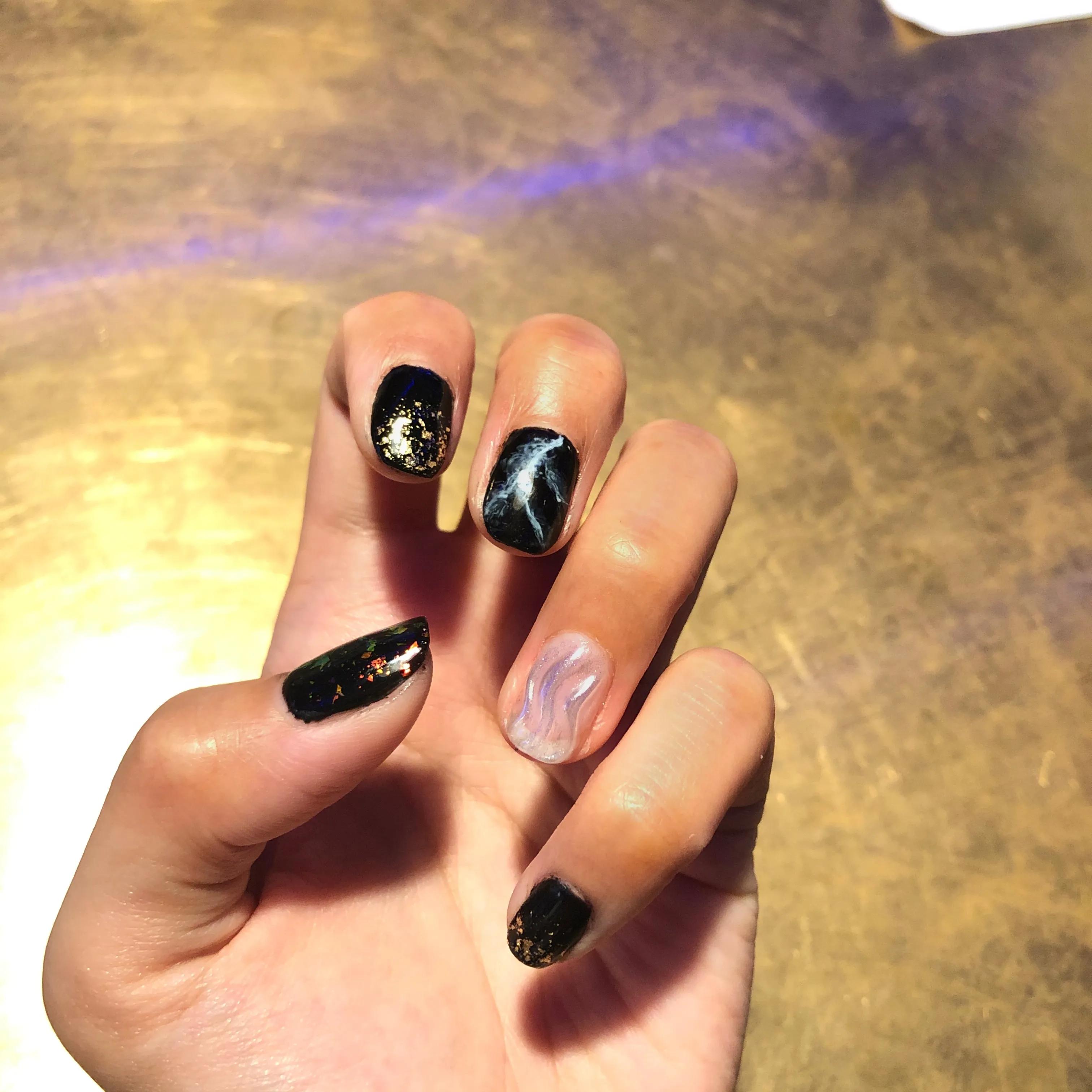 因?yàn)檐娪?xùn)暴曬,關(guān)節(jié)整個(gè)都是黑的,做指甲只能做黑色才能顯的不那么黑,太難了我