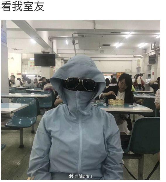 防曬的高境界,去食堂吃飯都不松懈。
