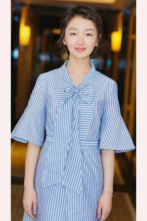 江疏影本影也是通勤條紋的愛(ài)好者。Philosophy藍(lán)白條紋立領(lǐng)襯衣,搭Theory白色西裝短褲,職場(chǎng)有這氣場(chǎng)已經(jīng)足夠了~