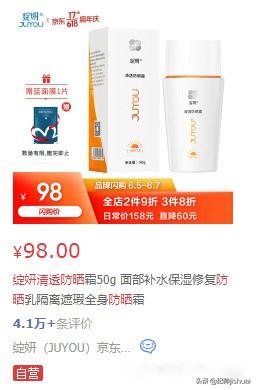 產(chǎn)品功:這款防曬霜中含有德國(guó)進(jìn)口的納米級(jí)別的超微粒二氧化鈦原料,可以有的抗輻射,而且質(zhì)地更為細(xì)膩清爽,不會(huì)讓你感覺(jué)到油膩哦,也不會(huì)堵塞毛孔。