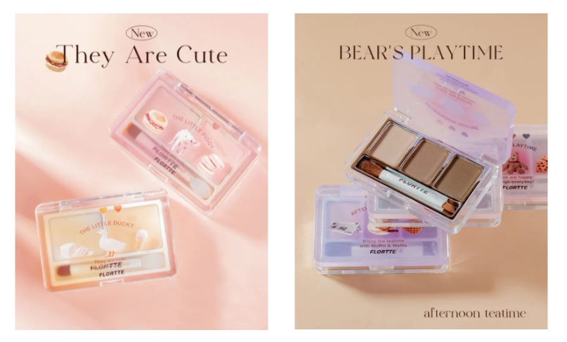 近日,花落莉亞可愛(ài)頌系列新增新成員——雙色高光膏與三色眉粉,該系列包裝采用透明外殼搭配產(chǎn)品同色系的小動(dòng)物與甜品手繪。