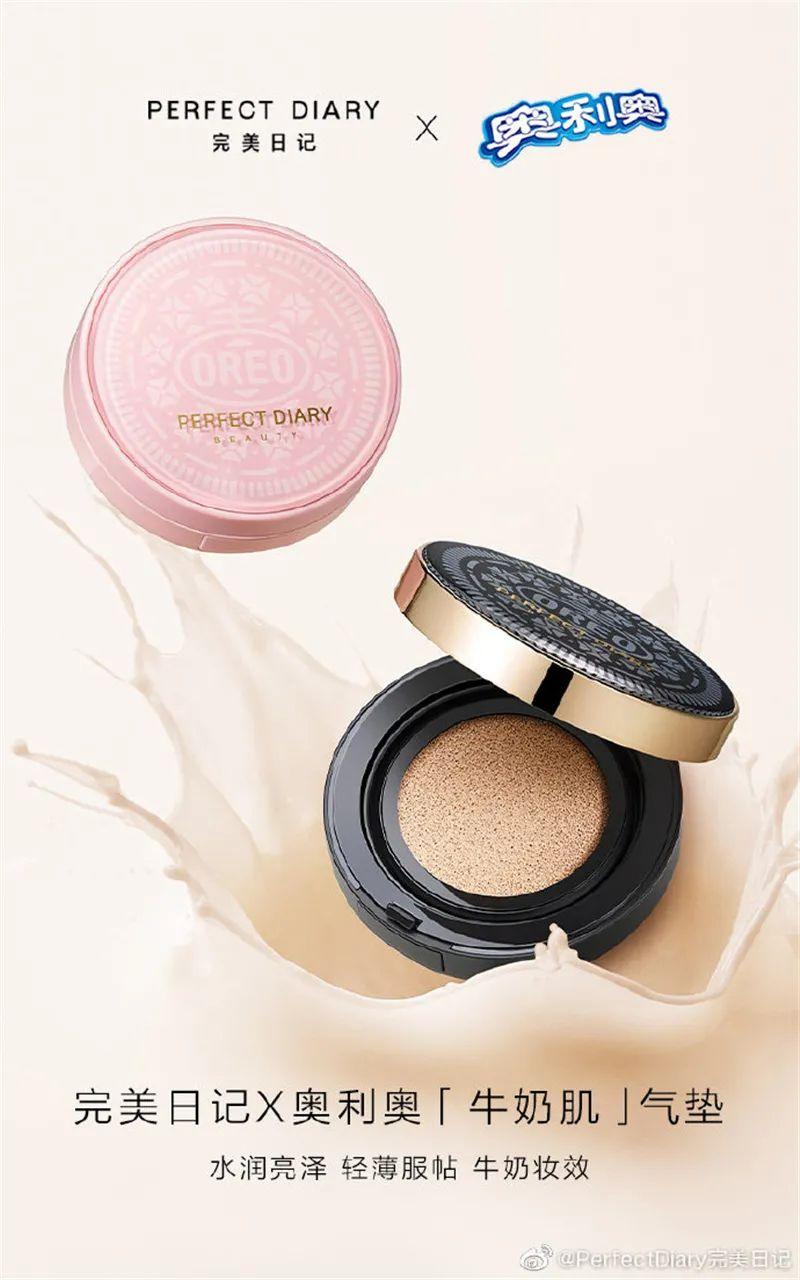 今年3月日記攜手奧利奧推出了全新包裝的餅干“牛奶肌”氣墊,該氣墊以?shī)W利奧餅干原型為靈感,將餅干上的花紋紋印在氣墊之上,分為櫻花抹茶粉色和白桃烏龍經(jīng)典黑色兩款。