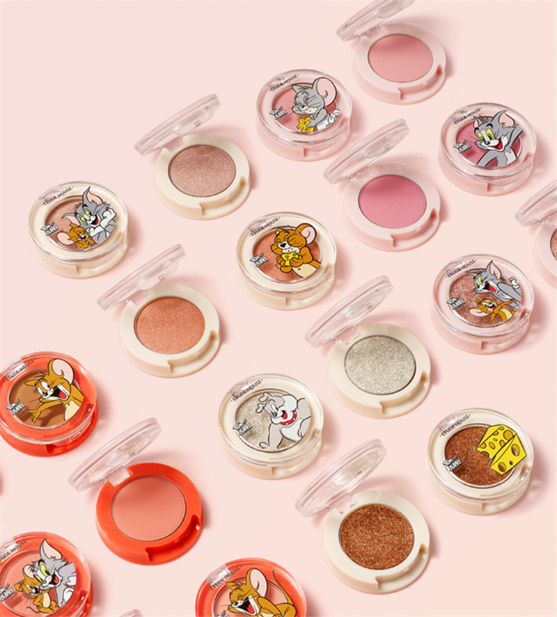 立體雙色腮紅采用了立體穹頂設(shè)計(jì),由流行色系雙雙組合,給消費(fèi)者呈現(xiàn)生機(jī)腮紅妝。包裝上也采用了立體的造型,Tom與Jerry的表情生動(dòng)形象、呼之欲出。