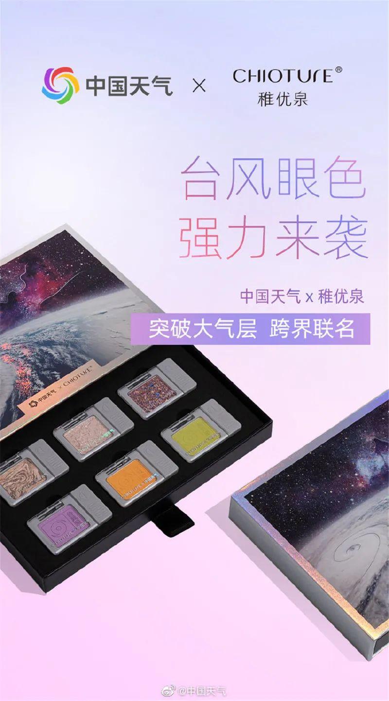 國(guó)產(chǎn)品牌稚優(yōu)泉在今年年初與富士instax推出了奇趣合一的定格柔焦“相機(jī)”散粉,520期間又聯(lián)手中國(guó)天氣以自然現(xiàn)象“臺(tái)風(fēng)眼”為靈感推出了臺(tái)風(fēng)眼眼影。該單色眼影盤共有6個(gè)SKU:警報(bào)(芒果黃)、低壓(薰衣草紫)、風(fēng)力(牛油果綠)、颶風(fēng)(灰棕大地)、風(fēng)暴(香檳銀)、旋渦(藍(lán)紫閃+玫瑰金)。