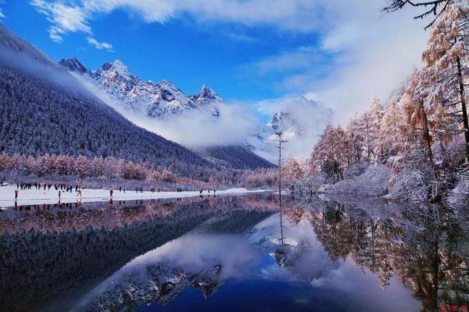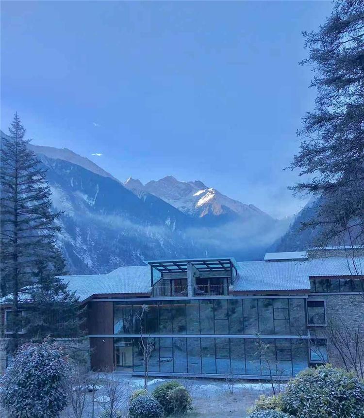 7個小時下來已是下午6點左右,到達(dá)理縣畢棚溝,下車原本已經(jīng)暗下去的天空,又被這皚皚白雪印的天空發(fā)光發(fā)亮。