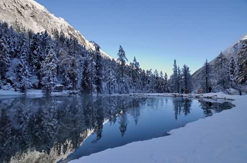 早餐結(jié)束去周邊游一圈,娜姆湖如畫一般矗立在山林之間,寒冷的天氣加上雪的鑄造,山水如冰雕一般透著光,眼見幕幕如幻影,美不勝收。