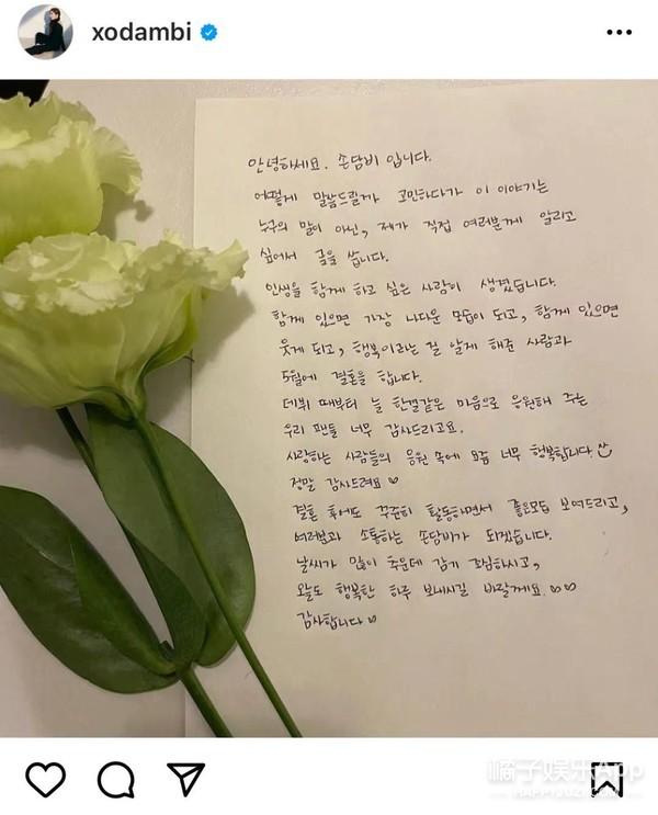 果然,她上傳手寫信,大方地公布了婚訊,