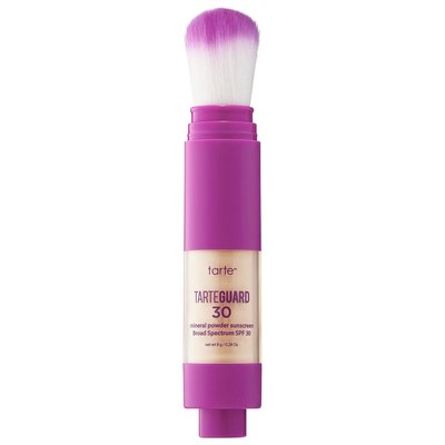 美國品牌Tarte Tarteguard也推出過無化學(xué)成分且不會破壞妝容的粉狀防曬霜,據(jù)稱可以保護(hù)皮膚免受UVA/UVB射線的傷害,且可以在妝后使用,半透明的礦物粉末不會像防曬霜那樣留下白色痕跡。此外,防曬霜上帶有一個刷頭為用戶提供了便利,刷涂形式可以解放雙手以保持干凈。