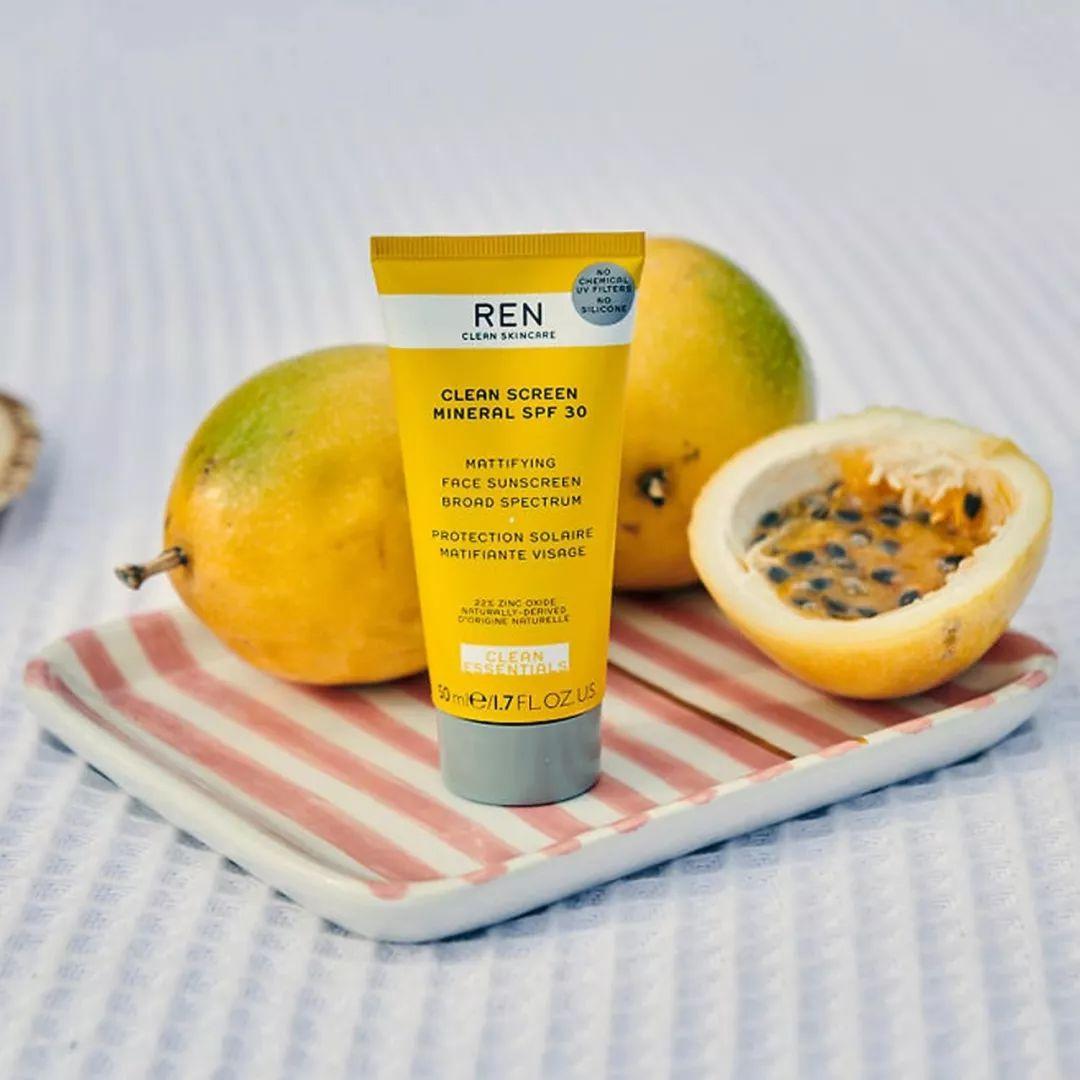 英國天然有機(jī)護(hù)膚品牌Ren Clean Screen Mattifying防曬霜由99%的天然成分的的純素配方制成,比如含有大米淀粉,能吸收多余油脂,另一個關(guān)鍵成分是百香果提取物,提供抗氧化保護(hù),免受污染和自由基損傷。
