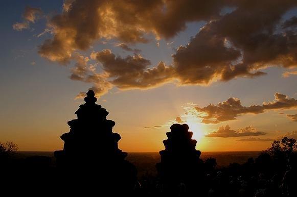 巴肯山是在吳哥窟西北1.5公里處的一座小山,高約70米,是附近的制高點(diǎn)觀賞日落。山的西邊是開闊的西池(West Baray),東南方叢林中是吳哥窟,山頂可以居高臨下俯瞰吳哥窟。