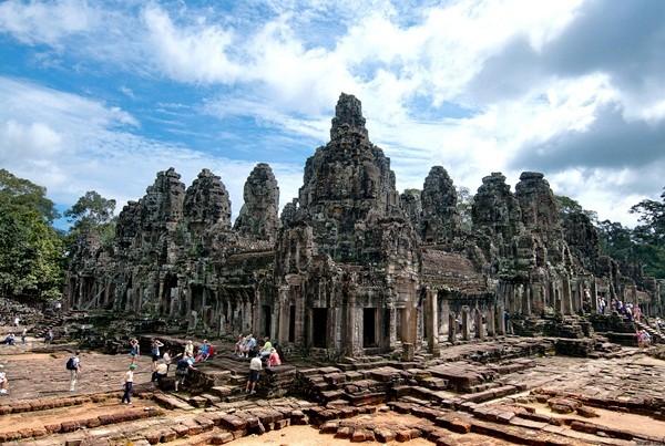 大吳哥城是真臘王國(guó)吳哥王朝的國(guó)都,于12世紀(jì)后期由高棉王國(guó)國(guó)王Jayavarman擴(kuò)建而成。城內(nèi)有巴戎廟(Bayon,又稱拜云寺)、寬闊的中央大道、宏偉的斗象場(chǎng)。