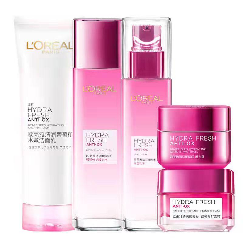 歐萊雅,歐美,這款清潤葡萄籽是人氣爆款。顏值高,淡粉漸變瓶身,很漂亮,價格也很親民,潔面+水+乳液+霜四件,才兩百多塊錢。