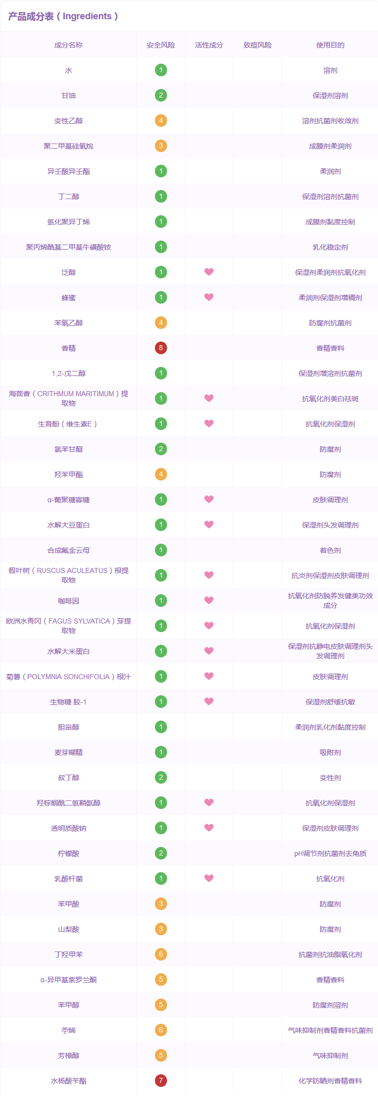 這個成分含有多種氨基酸、多酚類物質(zhì),多種糖類保濕劑。