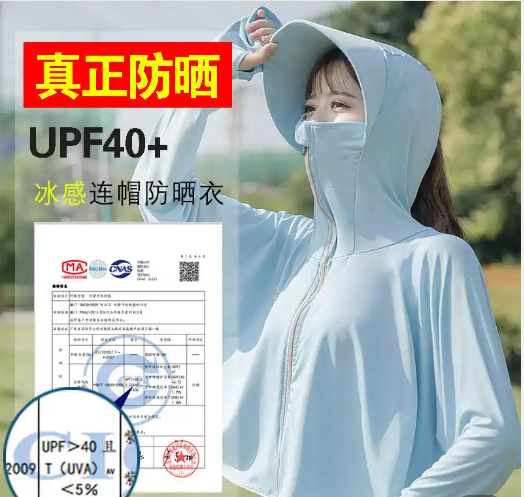 UPF 表示紫外線防護(hù)系數(shù)(ultraviolet protection factor),UPF 值越大,防曬衣的防曬能力就越好。