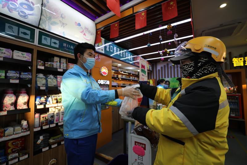 美團(tuán)騎手前往昆侖好客門店取顧客訂單 受訪者供圖