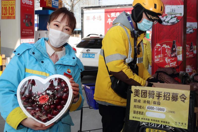 昆侖好客店員展示門店的本地特色商品—大連櫻桃 受訪者供圖