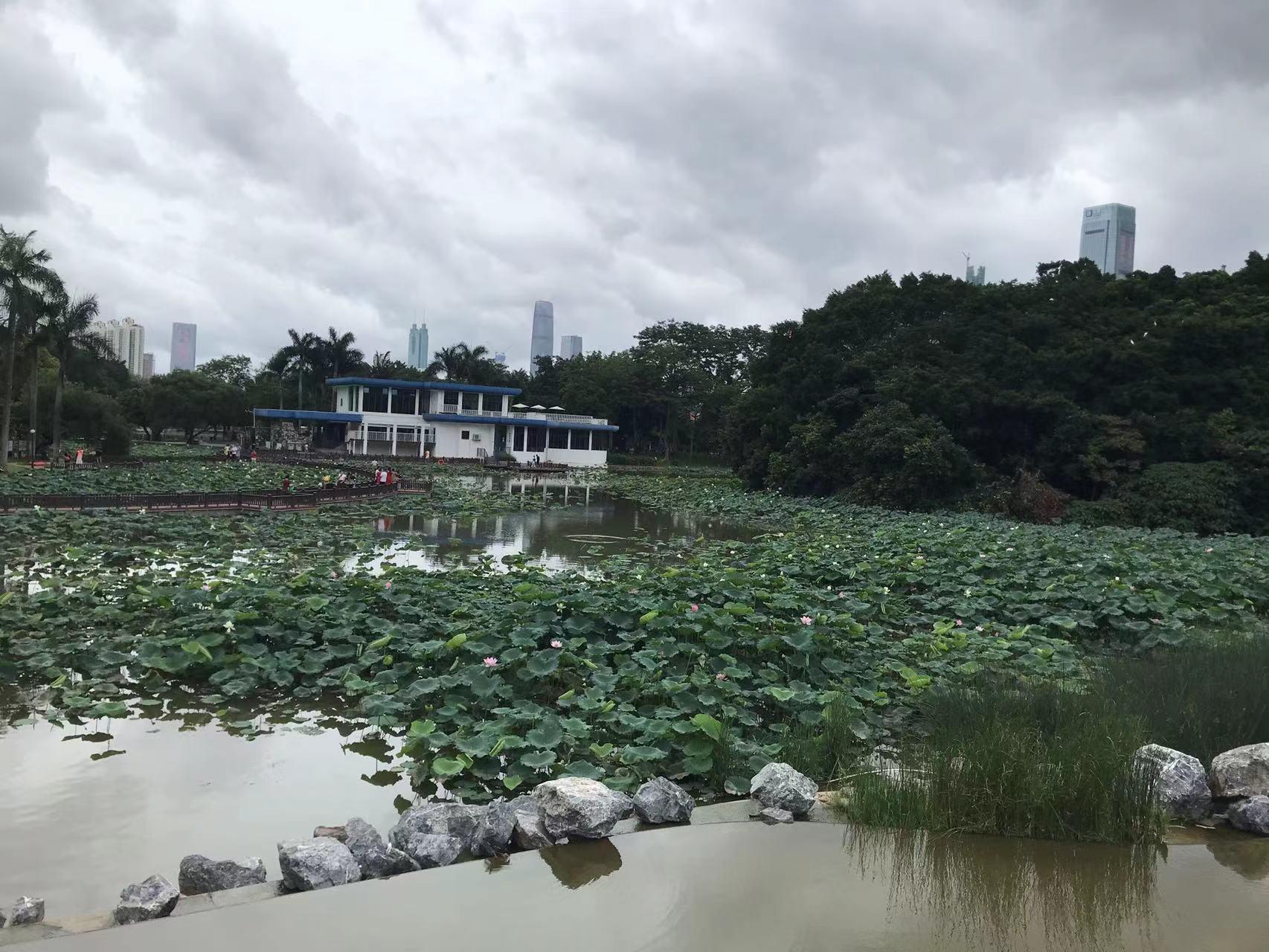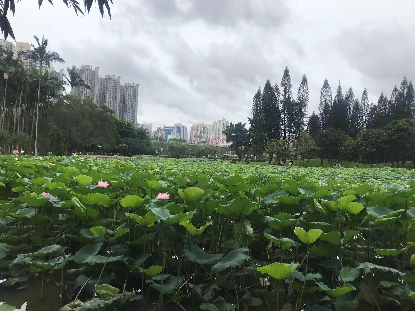 從來深圳之后就聽說洪湖公園每年有荷花展,但一直拖著沒去看過。趁著今天是近難得不下雨的一天,帶上娃就去看看吧。