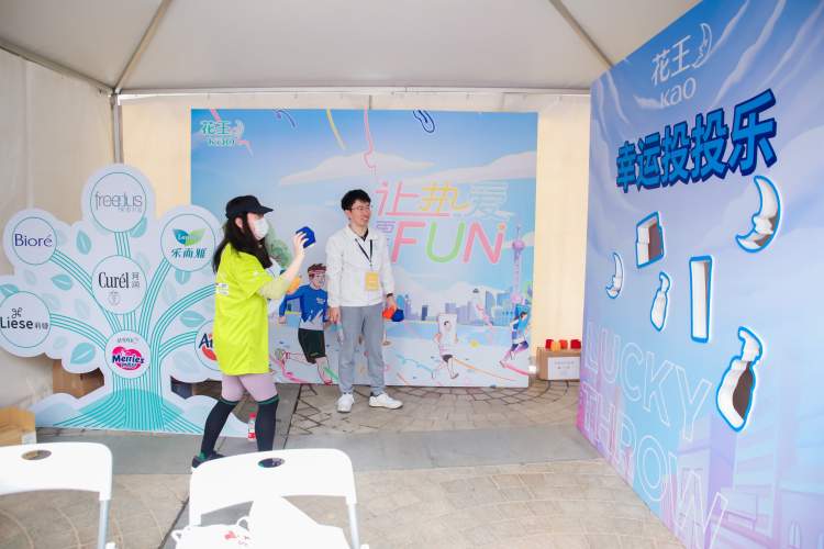 作為本屆賽事的贊助商,花王為現(xiàn)場參賽選手提供了防曬霜等生活用品,同時在現(xiàn)場設(shè)置了專門的互動區(qū)域,將品牌系列產(chǎn)品與各類小游戲相結(jié)合,提高參賽選手的活動體驗。選手們玩得開心,還能贏得品牌方精心準備的U盤、小樣套裝等禮品。