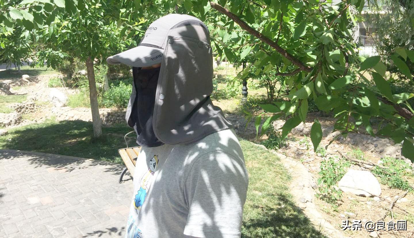 脖頸的遮擋也是充分的,脖子處的面料能夠和面部遮擋的網(wǎng)面通過摁扣連接在一起形成環(huán)形密閉結(jié)構(gòu),不會隨風(fēng)吹起,遮陽果充分到位。