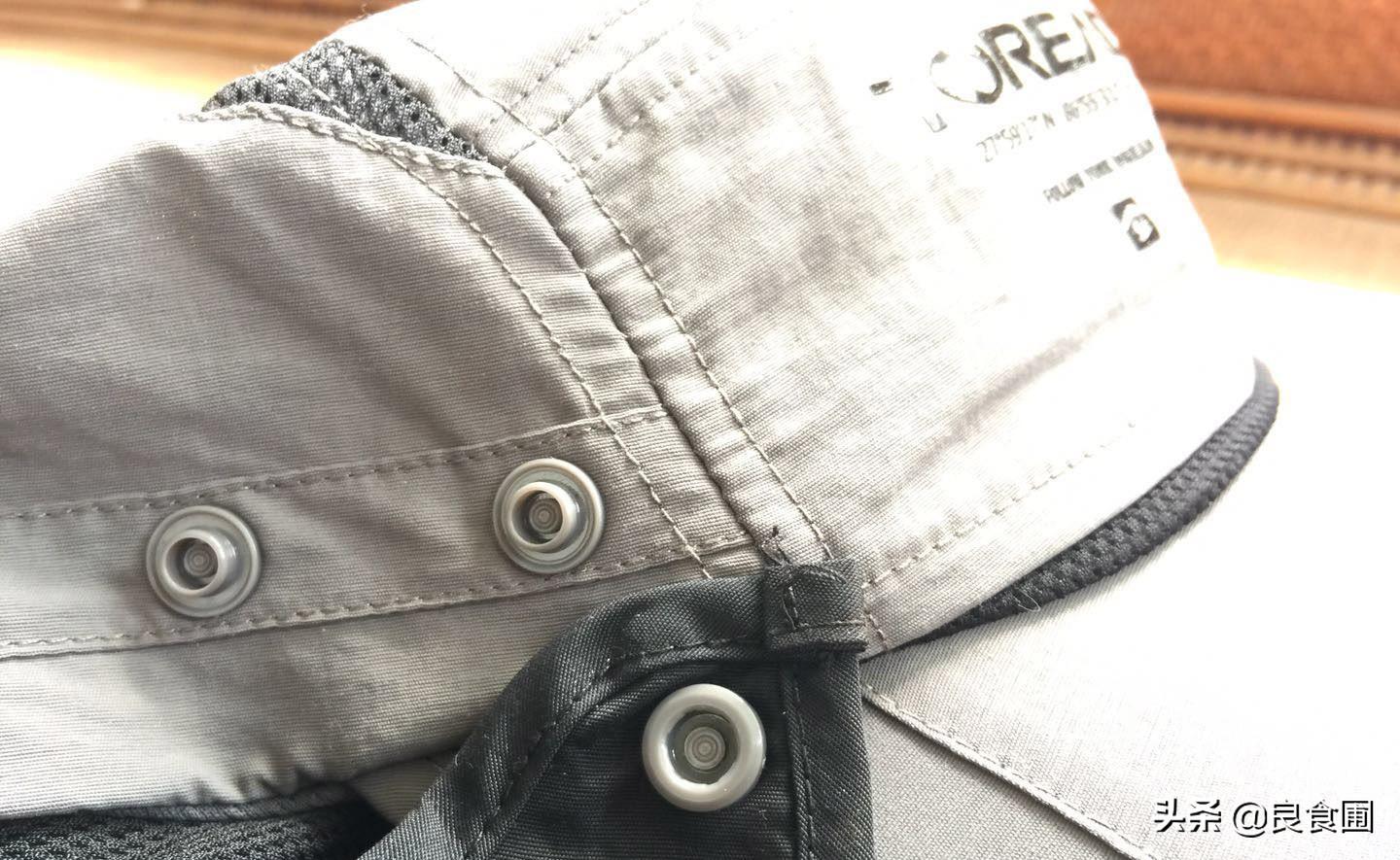 細(xì)節(jié)方面這款帽子做的也是很充分到位的。首先帽子主體和遮擋網(wǎng)布之間所有的連接摁扣都是PVC材質(zhì)的塑料摁扣,避免了金屬摁扣接觸皮膚時的不舒服;帽子主體在頭的兩側(cè)和正前方采用了拼接網(wǎng)紗大大增強(qiáng)了帽子的透氣性能;材質(zhì)方面,帽子主體面料采用經(jīng)過吸濕速干整理的錦綸面料,吸濕透氣、柔軟輕便,顏色方面有三個顏色,除了現(xiàn)在評測的這款深灰色還有卡其和鐵藍(lán)灰另外兩個顏色;均碼的尺碼帽圍58厘米,帽后可調(diào)節(jié)尺寸,松緊度可以根據(jù)自己需求調(diào)整。