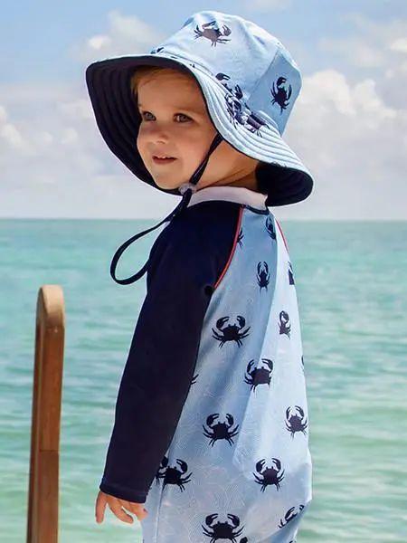 防曬衣也可以幫寶寶安排上,但是在選擇的時(shí)候,一定要看吊牌上是否有UPF(紫外線(xiàn)防護(hù)系數(shù))40+或UPF 50+的參數(shù)、UVA(寶媽們記住,這種紫外線(xiàn)會(huì)把人曬黑)通過(guò)率是否小于 5%。
