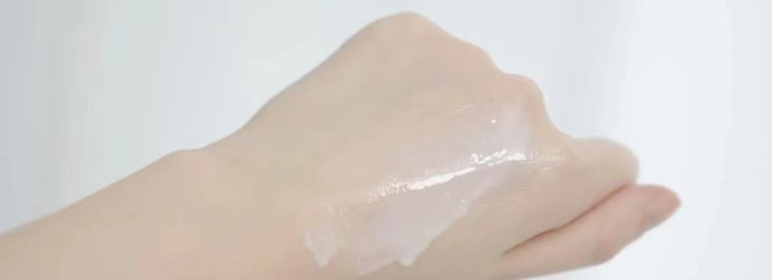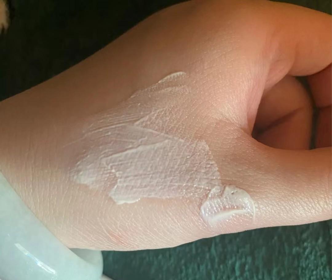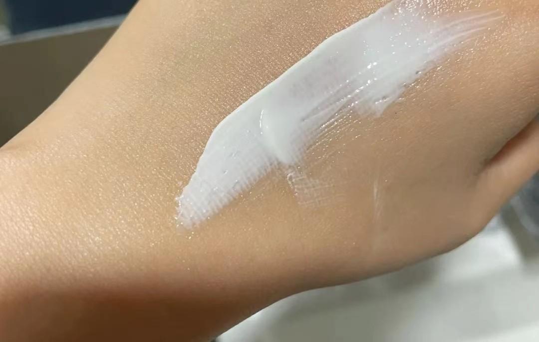 防曬霜偏厚乳液的質(zhì)地,上臉幾乎沒有流動性,拍開后能夠快速成膜,但膚感又不會特別油膩。