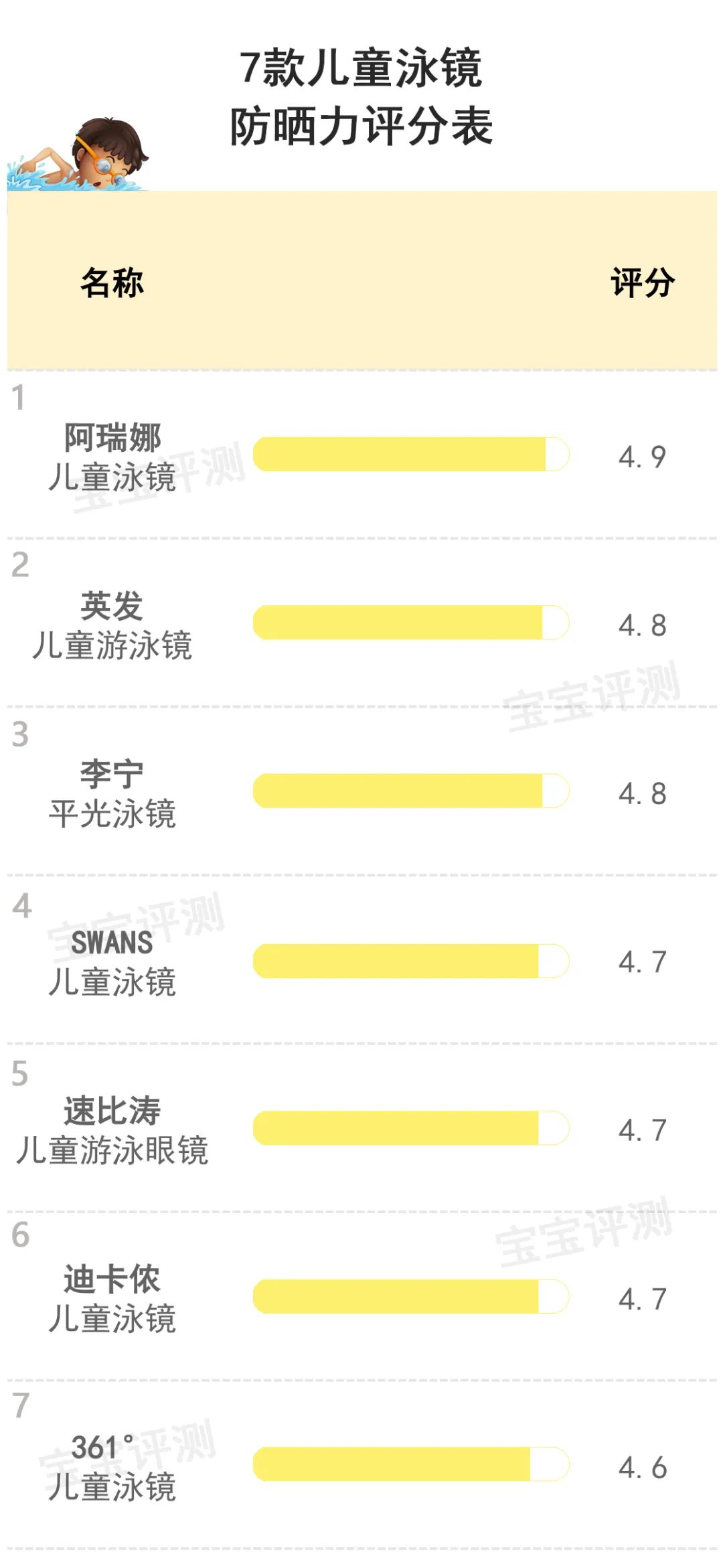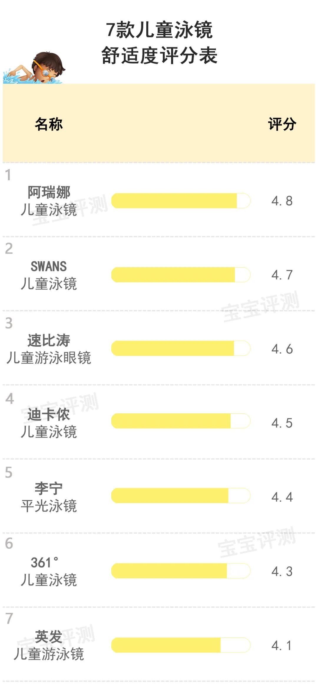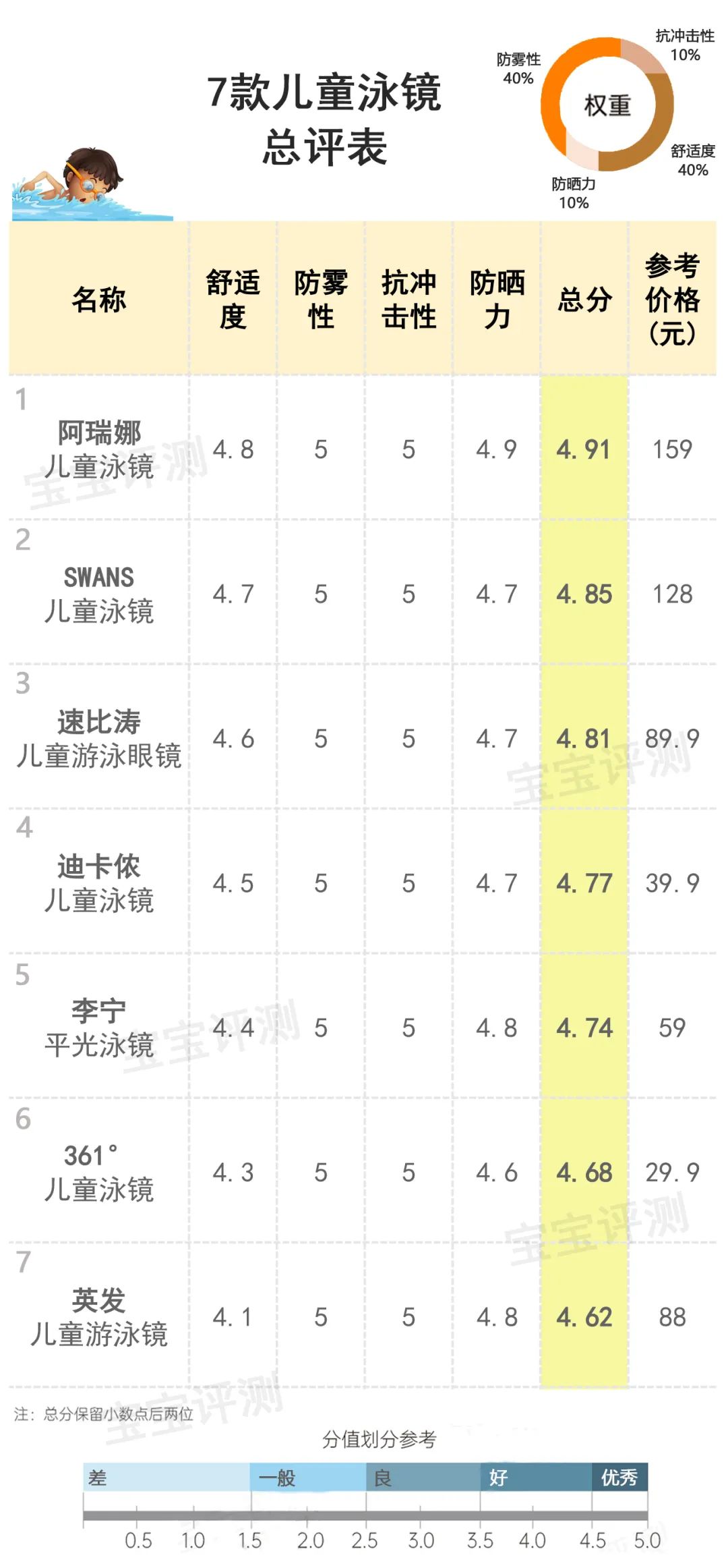 總評為給大家提供一個相對比較直觀的參考,笨爸爸對7款兒童泳鏡進(jìn)行了綜合評分及排名: