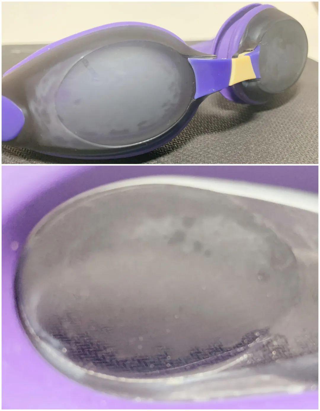2、笨爸爸還針對一款沒有“防霧層”的泳鏡,進(jìn)行了同樣的“防霧性測試”。結(jié)果顯示,此款泳鏡的鏡片內(nèi)層,形成了的霧氣。