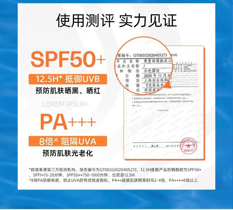 PA+++,SPF50+(15倍防曬,12.5小時(shí)持續(xù)防曬),防曬能力吊打堪稱級別。