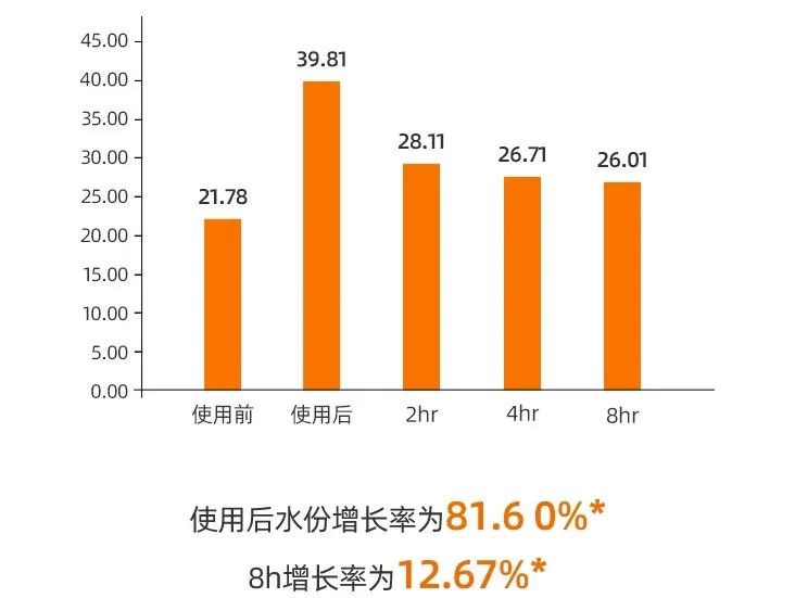 在使用小藍(lán)帽后皮膚水分增長了81%,而且8小時(shí)后仍了12.67%的水分。