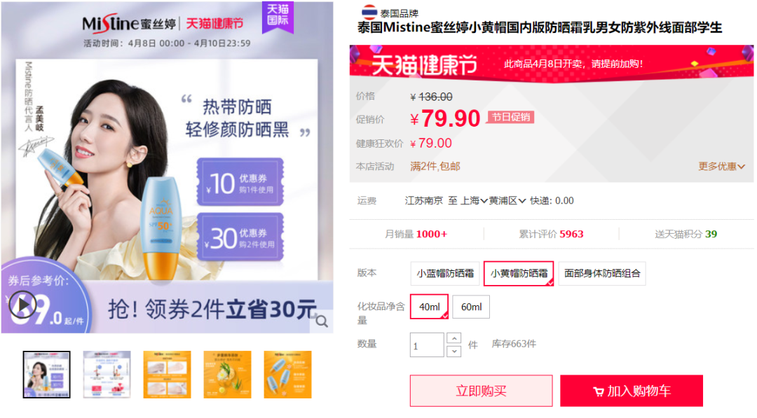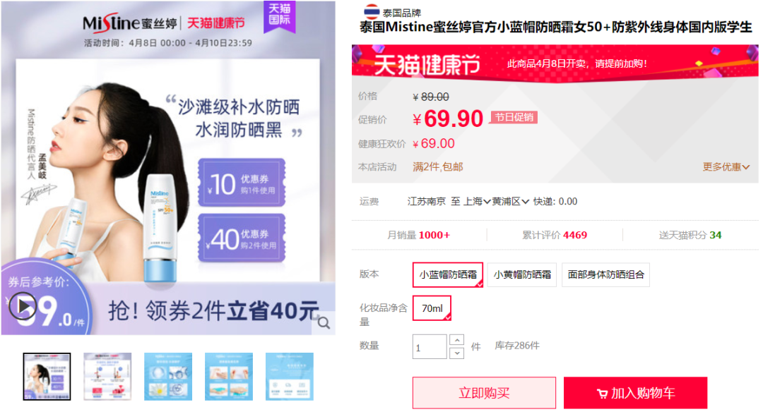 所以,今天給大家推薦的兩款大碗平價(jià)還巨好用防曬霜「Mistine (蜜絲婷)小黃帽&小藍(lán)帽」~