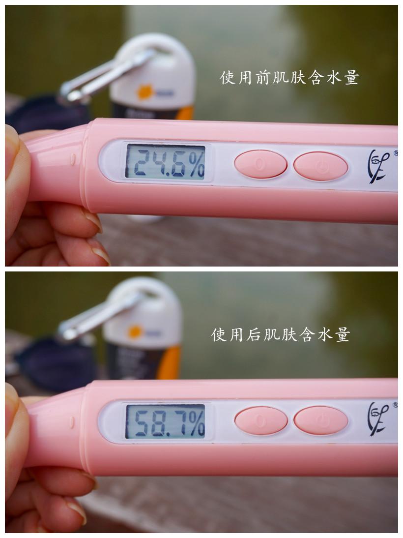 所有的護(hù)膚品中,補(bǔ)水是基礎(chǔ)也是重要的,來看下使用防曬霜后的含水量,飆升了兩倍多的數(shù)值,證明了它的補(bǔ)水力,這保濕果堪比補(bǔ)水精華了。