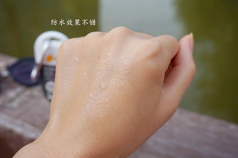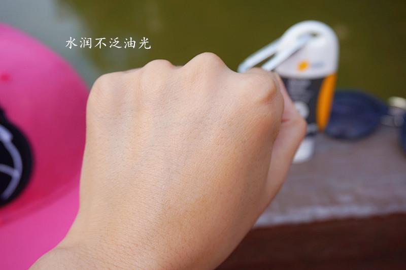 運(yùn)動(dòng)后大量的流汗,如果防曬霜的抗水性不好,那就等于白涂了,照樣曬黑曬傷!在使用過防曬霜的手背肌膚噴灑上補(bǔ)水噴霧,從上滑落的水珠沒有變渾濁,還是清澈透亮的,說明這款運(yùn)動(dòng)戶外防曬霜的抗水性也是很不錯(cuò)的, 戶外玩水也毫無壓力了。