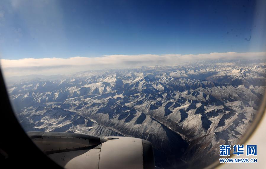 從一架西藏高原航線班機(jī)上觀看到的機(jī)艙外景色(2016年12月29日攝)。新華社記者 晉美多吉 攝