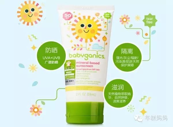 自然礦物成分,質(zhì)地溫和,極低過敏源。的寶寶日用品牌Babyganics家的防曬霜,防曬指數(shù)很高,具有一定的防水功能,用起來也是清爽不油膩。