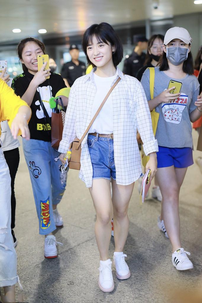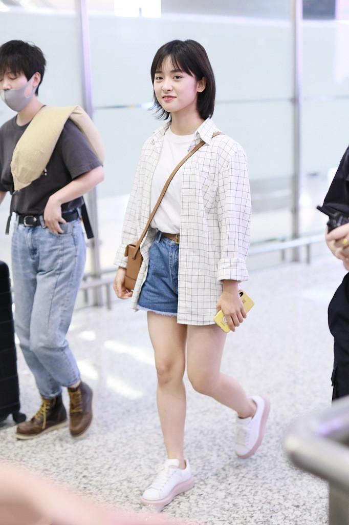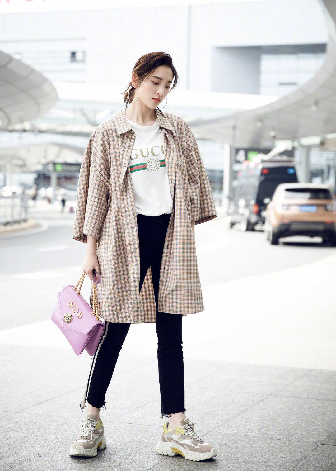 沈月的這一身機(jī)場(chǎng)look便是利用襯衫做搭配,黑白格紋設(shè)計(jì)經(jīng)典大方,也保持了整體風(fēng)格的清新美好,眾所周知,沈月的身材屬于微胖嬌小的類型,因此在搭配上更要注意選款,這種中長(zhǎng)款襯衫恰好蓋住臀部,只要內(nèi)搭注意凸顯腰線,就能起到很好的顯瘦顯高果,沈月的牛仔短褲腰身還利用棕色腰帶做裝飾,修飾身材果更出眾。
