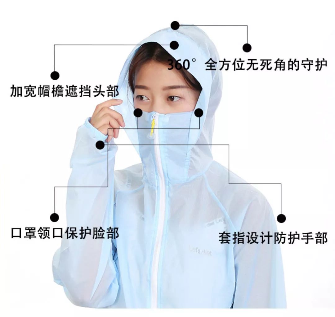 當(dāng)我們要進(jìn)行一些長時間的戶外活動,又不方便打傘時,防曬衣真的是必備的一個東西。到了夏天,電動車自行車都不敢騎了,有了防曬衣,也不害怕騎車了。