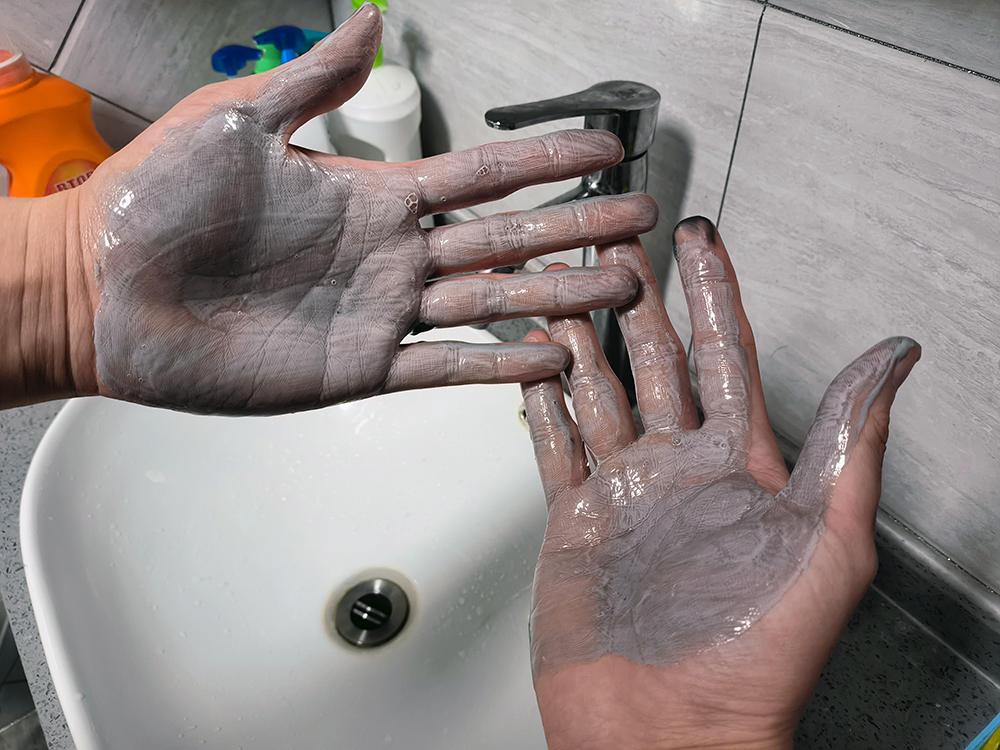 物理吸盤潔炭面泥則是灰色的膏體,通過雙手的揉搓會(huì)泛有微微的白光。在使用過程中不會(huì)像氨基酸潔面慕斯產(chǎn)生綿密的泡沫,需要在面部充分揉搓,使其物質(zhì)滲透在肌膚深層中才能實(shí)現(xiàn)污濁吸附的果。清水沖洗過后,給我的感覺面部肌膚瞬間清爽,對(duì)臉部泛白光,表面暗沉有著很大的改良。