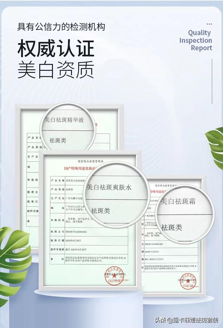 同時(shí)它也是批準(zhǔn)認(rèn)證的正規(guī)祛斑產(chǎn)品,有藥監(jiān)局的檢測(cè)報(bào)告,國(guó)妝特字證書,完全可以放心的使用。