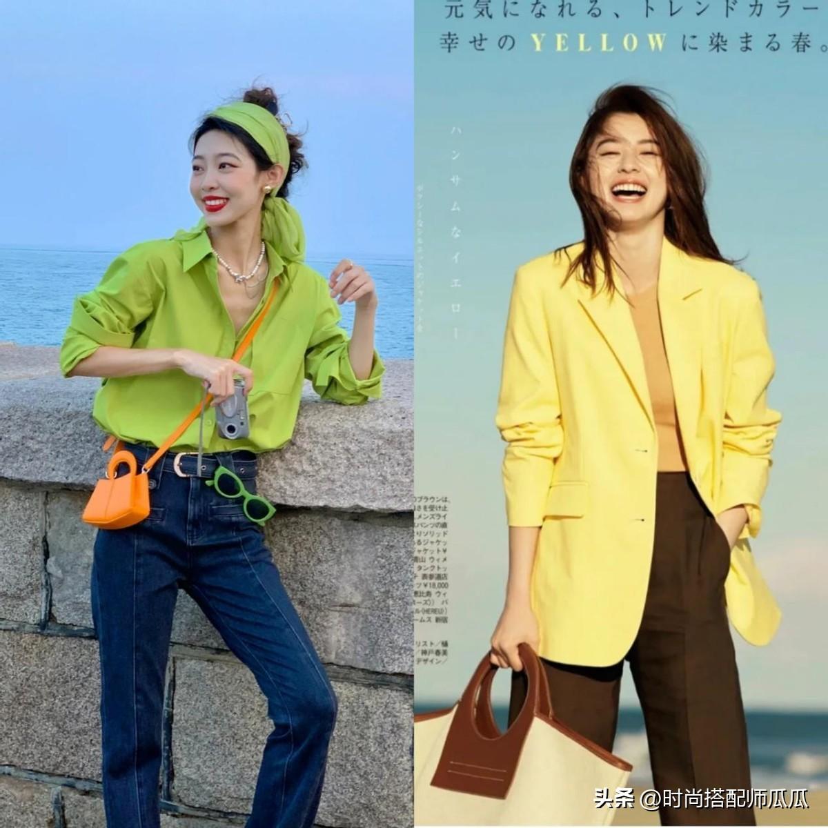 除此之外,檸檬黃在穿搭中作為主打色也會吸引人們的注意力,會讓焦點聚集在衣服的顏色上而不是整體穿搭上,不過作為配飾的話,檸檬黃則合適,有點綴吸睛的果。