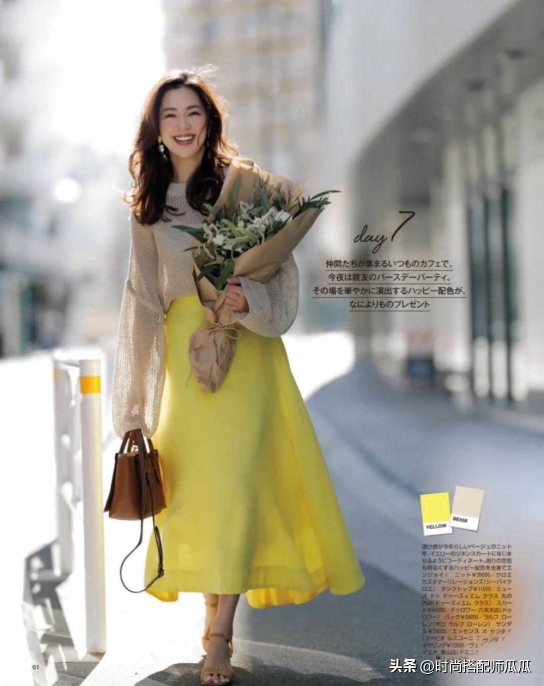 奶油黃可以與大量的基礎(chǔ)色相搭配,它作為點綴色摻雜在其中,這樣子既能夠降低基礎(chǔ)色的冷淡感,又能讓穿搭看起來簡約卻不失時尚感,具有減齡的作用。