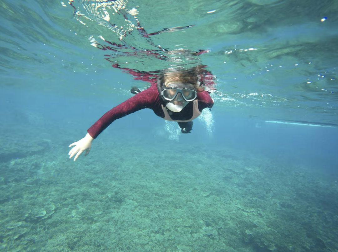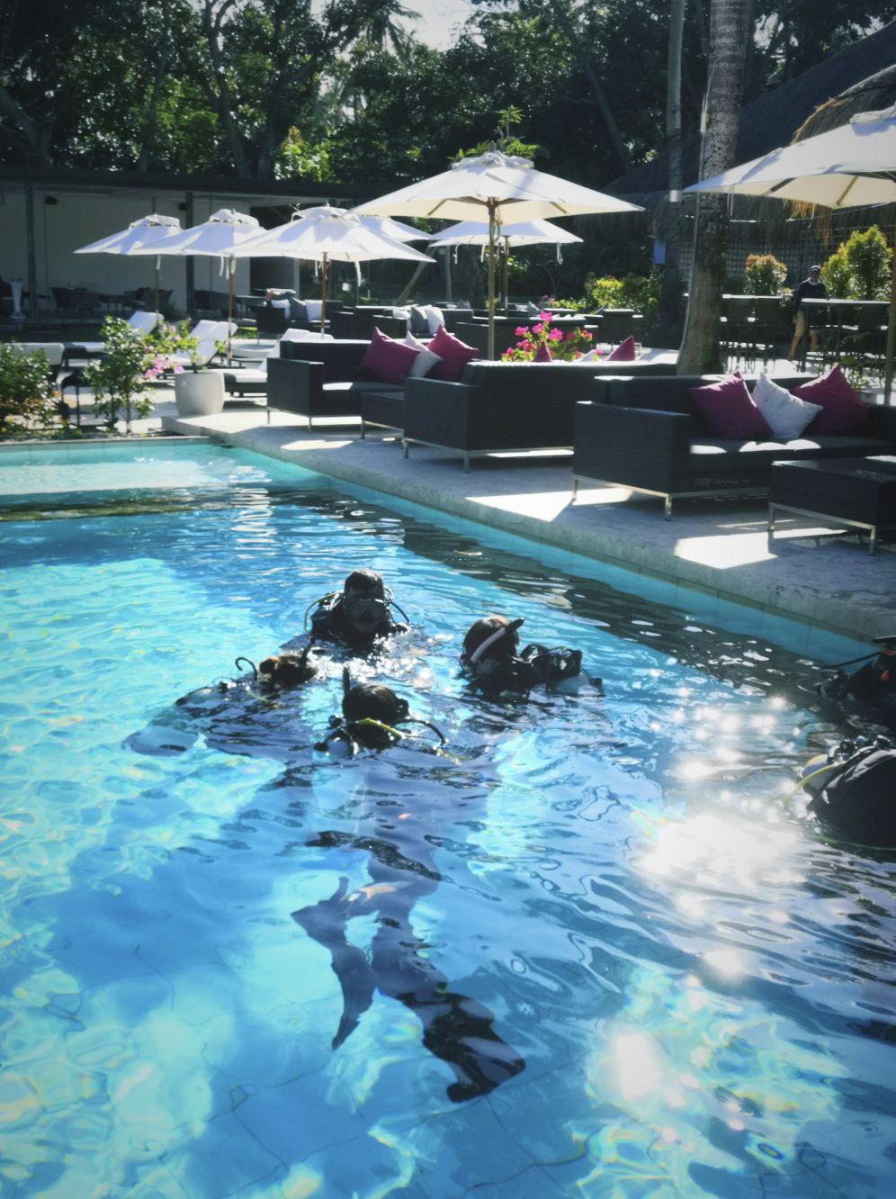 如果你要要深潛,首先需要提前學(xué)習(xí)基本功。我們是在酒店的泳池學(xué)習(xí)一些基本的技巧與手勢(shì),學(xué)會(huì)后由教練帶著在酒店附近的海灘邊簡(jiǎn)單感受一下水肺潛水。剛開(kāi)始,用嘴呼吸許多人會(huì)不習(xí)慣,多呼吸幾次,習(xí)慣了就不會(huì)緊張。