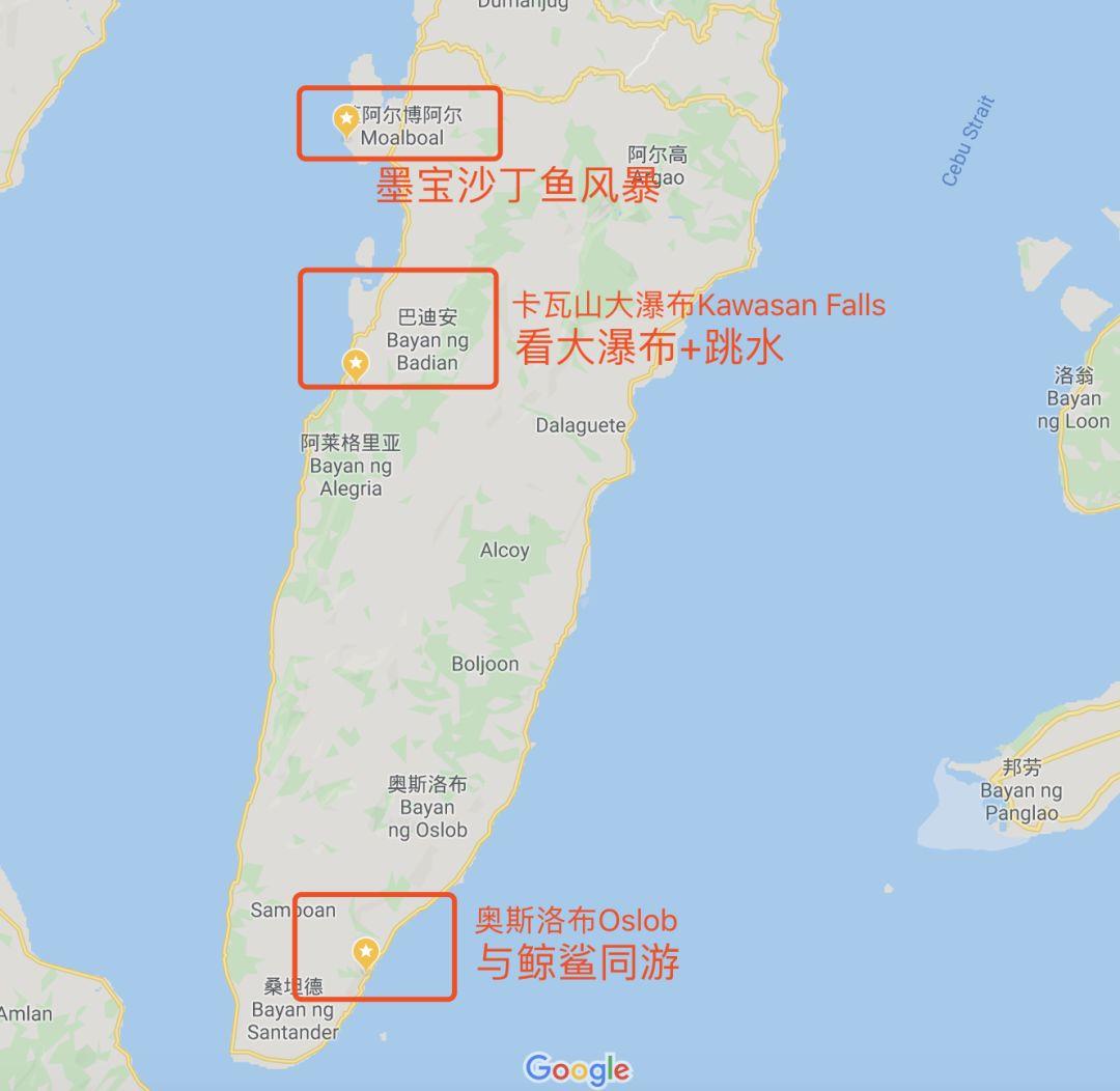 宿霧是一個(gè)狹長(zhǎng)的島嶼,一些玩耍點(diǎn)離市區(qū)挺遠(yuǎn)。跳大瀑布+沙丁魚(yú)風(fēng)暴,參加這兩項(xiàng)活動(dòng)建議住在墨寶(Moalboal)附近。
