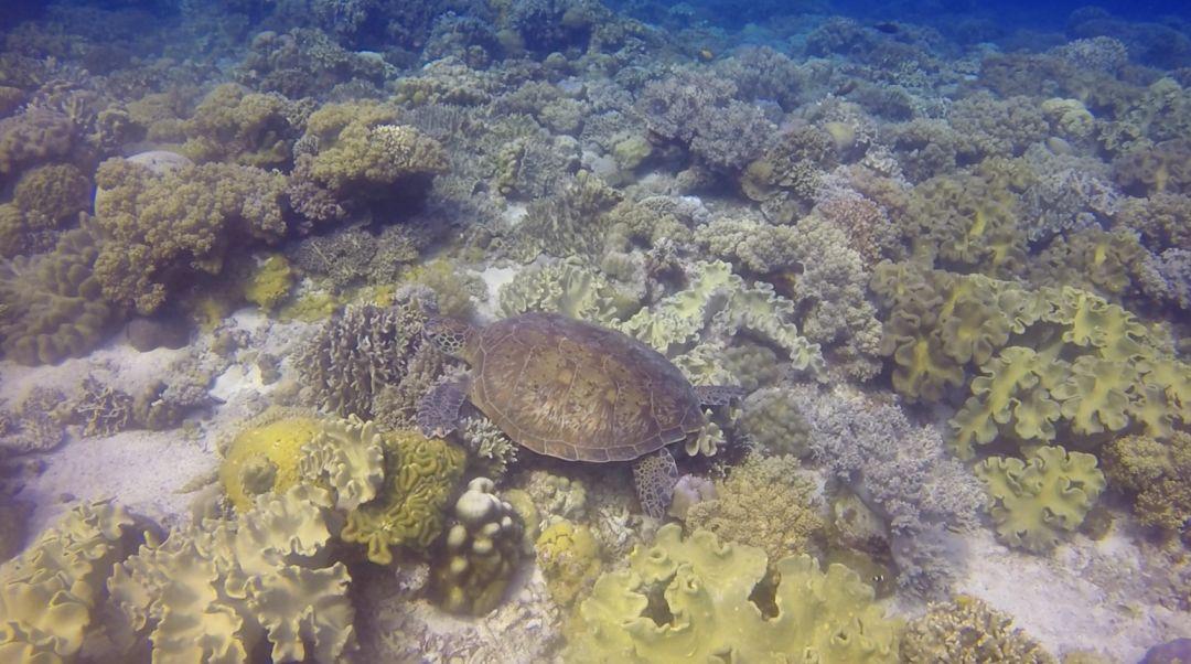 阿波島周?chē)暮K芟?,透明到時(shí)不時(shí)在船上就能看到海龜游動(dòng)的身影。