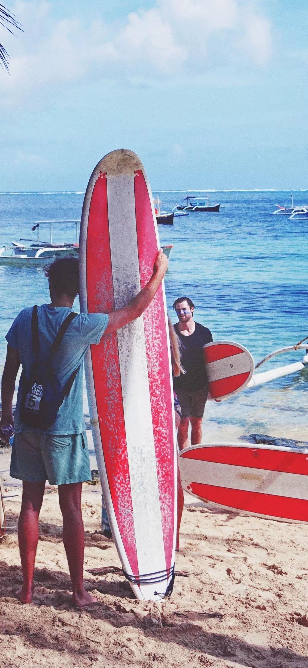 拿著沖浪板的人,走路帶風(fēng),全身上下都散發(fā)著一股悠閑感,就問(wèn)你想不想那么酷。