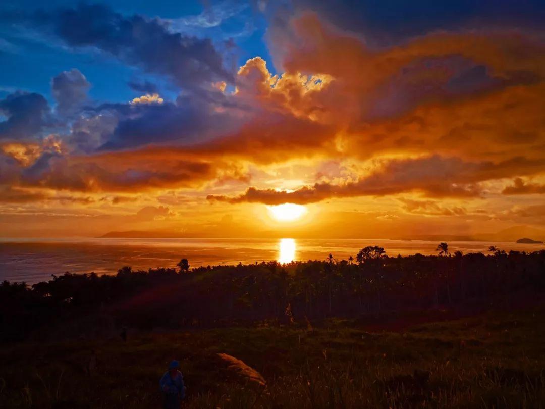 從岸邊出發(fā),大概走十幾分鐘,我們就攀登到了山頂。正好是傍晚時(shí)分,大家還在山頂看了一場(chǎng)一輩子都難忘的日落。