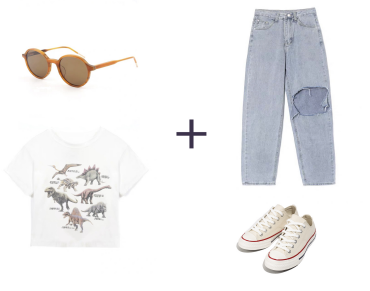 短款上衣是2019夏天的流行單品,減齡又可愛;破洞牛仔褲作為經(jīng)典款有其長久不衰的魅力,可愛上衣搭配酷酷的牛仔褲,配上個性款墨鏡,“酷girl”就誕生啦!