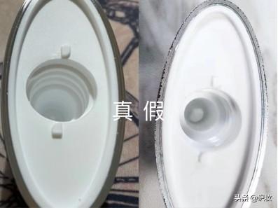 上圖為蓋子內(nèi)壁的對比,假蓋子的銀色外圈的那些毛刺我應(yīng)當(dāng)注意到了吧!內(nèi)蓋平滑, 邊緣銀色包邊有光澤。假貨內(nèi)蓋粗糙、 邊緣包邊粗糙有灰點, 沒有光澤。