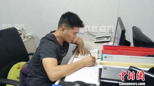 楊林海在船上的辦公室里工作。 溫孟馨 攝
